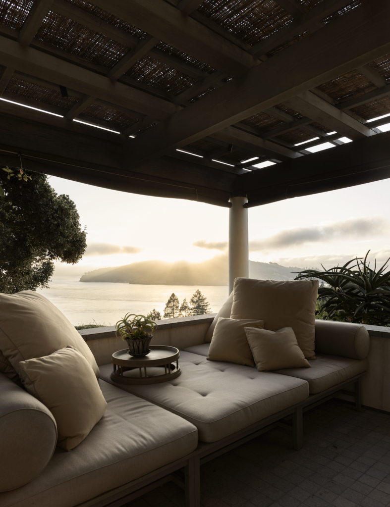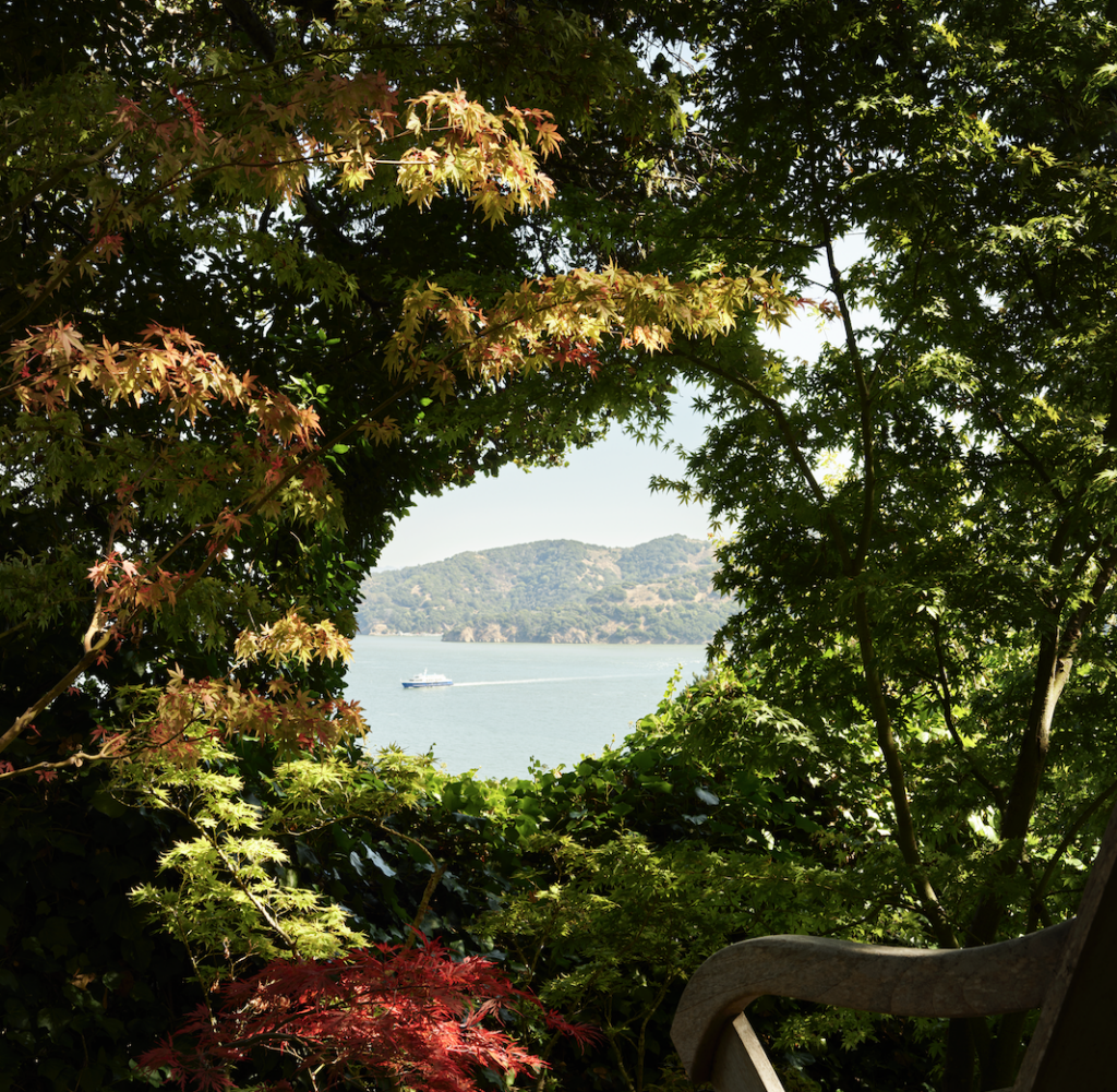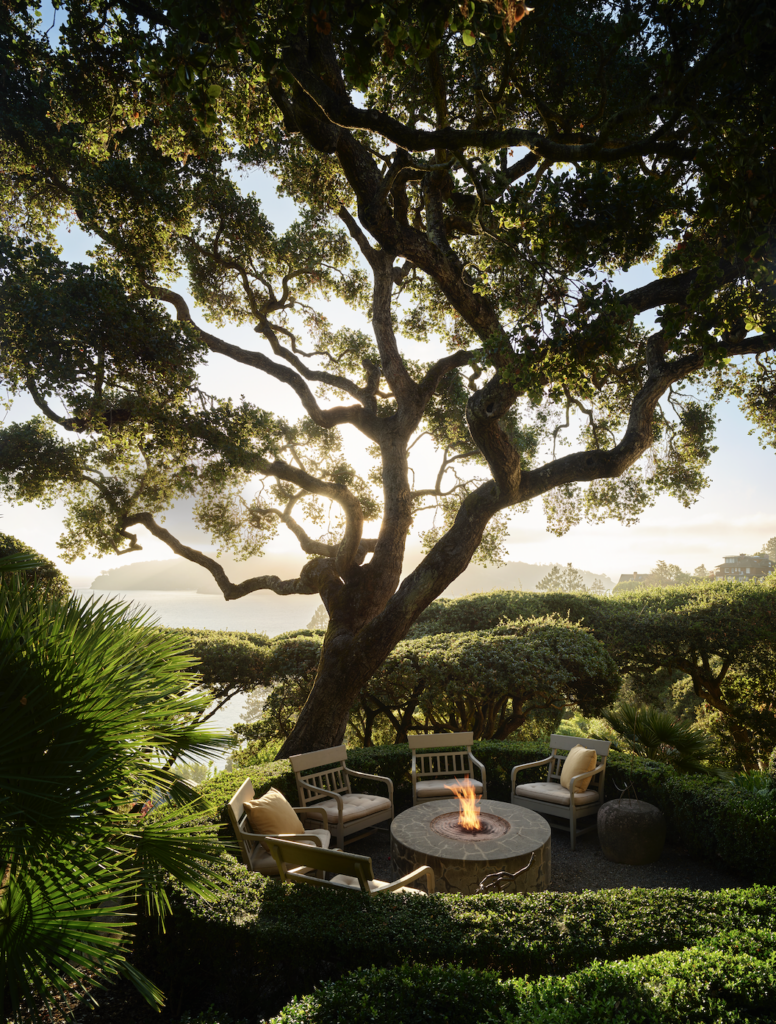 The existing garden had become so overgrown that views of the San Francisco Bay and Angel Island were obstructed. Over the years, through the collaborative efforts of landscape designers Stephen Suzman, Todd Cole and Howard Formby, a dream garden came to fruition—one perfectly suited for reading, lounging and entertaining. “The weather is always different, as is the light, and the garden keeps growing and changing,” Wiseman observes. “And it has a lot of old concrete; I love all the cracks. It’s not too perfect.”