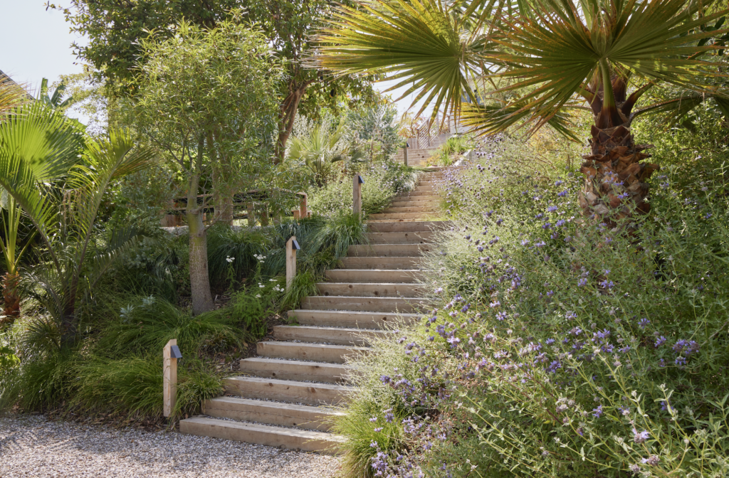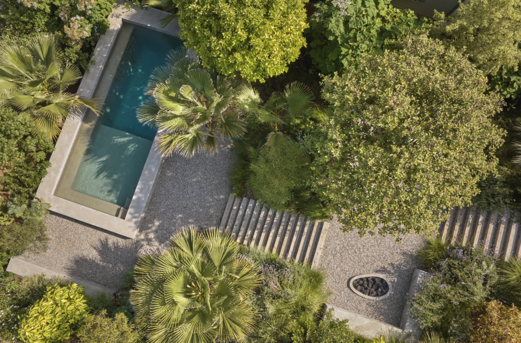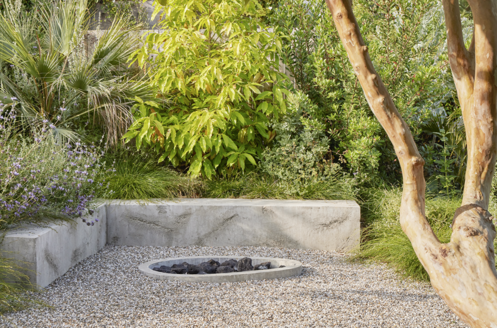 While they are not the first firm to mix Californian and Australian flora, they did incorporate a few rare gems that Sam Webb (the primary designer on this project) found, including tree daisies that were discovered at his secret source in San Diego. “We planted a Michelia champaca tree, which has bright green foliage and incredibly scented flowers,” he notes. “Urban lore says that the scent of Chanel No.5 was modeled after its fragrance.” The final result is a multitiered modern verdant escape where the homeowners can enjoy different levels of their backyard. When asked which area the Terremoto team loves the most, Godshall says, “The firepit seating area is the most visually striking moment to us, but we’re biased!”