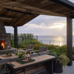 They brought in Robin Benezra Studio on the landscape design, to help bring the clients’ vision to life. “This site is truly spectacular,” says Spierer. “With the west property line rising 150-feet above the Pacific Ocean, our charter was to design a home that celebrates this extraordinary setting, capturing the breathtaking views and embracing the surrounding landscape. Because of the sheer drop of the cliffside, the site had to be stabilized. To anchor the home securely into the terrain, the foundation required 120-foot-tall caissons, ensuring long-term structural integrity while allowing the architecture to appear light against its rugged backdrop. “