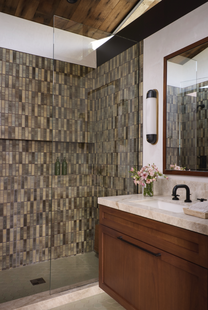 The result is an open, airy structure that features natural materials and multiple areas open to the outdoors, with pops of personality throughout. “Our clients were so happy with the results,” Clarke remarks. “They had envisioned a glimpse of the Pacific Northwest within a West Coast home, and the final design beautifully reflected their travels and the elements most meaningful to them. It was a special project—seeing how months of thoughtful conversation and decision-making transformed their vision into a true sanctuary for their family.”
