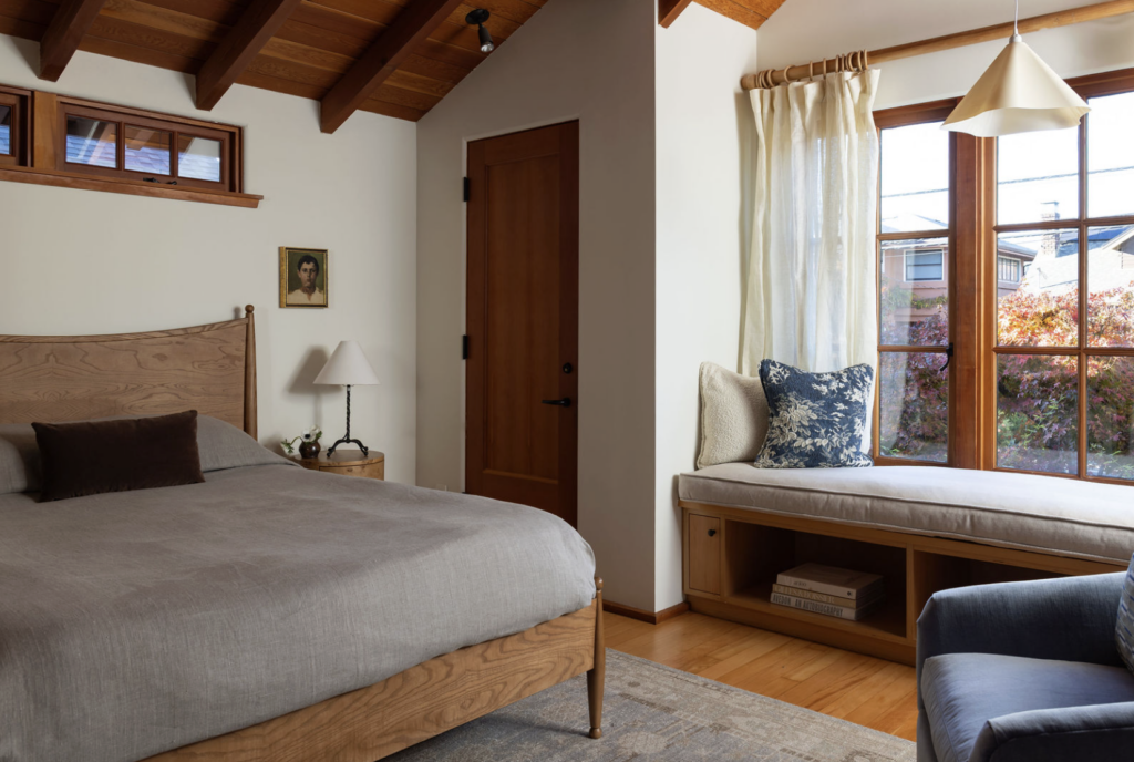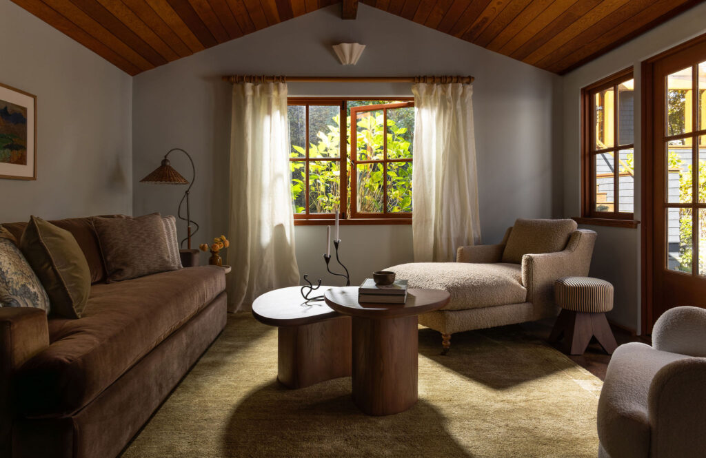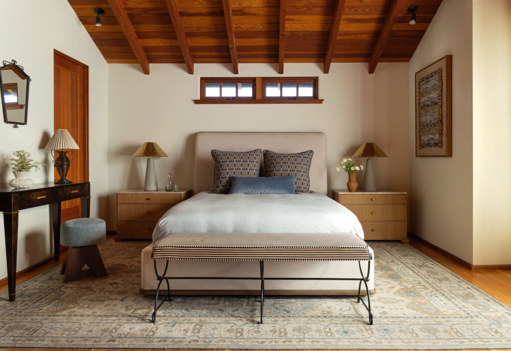 When hired to update the furniture and decor inside this Craftsman in Oakland, Williams & Grange embraced the existing woodsy, mid-century sensibility details and took design cues from the home’s redwood paneling and exposed beams, allowing the direction to be formed. “Drawing inspiration from the warmth and richness of the redwood, we leaned into a distinctly Northern California sensibility—layered, organic and connected to nature—while introducing a mix of traditional elements, timeless design, modern updates and subtle mid-century modern influences,” says co-founder Blair Williams. “The goal was to create spaces that feel authentic to the home’s original character, yet more elevated, collected, and enduring—interiors that feel warm and intentional rather than overly renovated or trend-driven.”