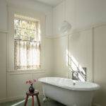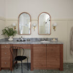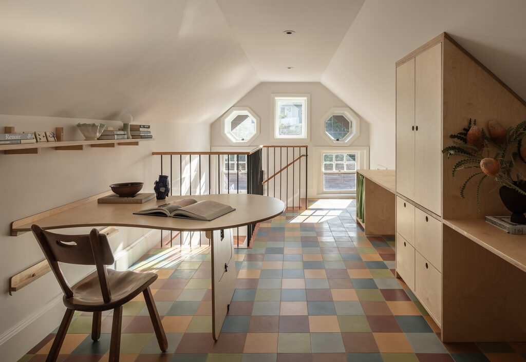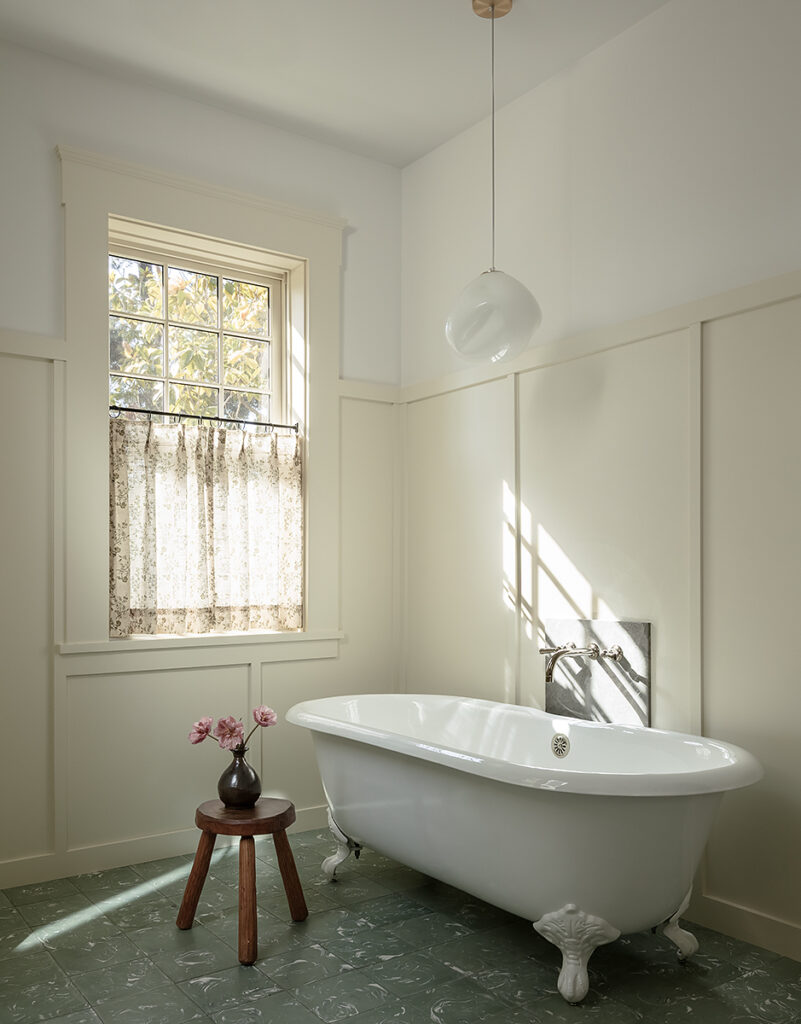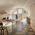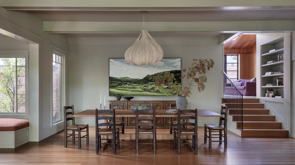He along with designer KH Interiors, were hired by the clients to reconfigure a Tudor Revival (ca. 1904) that was originally built as the Carriage House for a nearby estate. The top three goals were to open up the layout, form a deeper connection to the outdoors and update the interiors to accommodate modern living while honoring the original characteristics. “The existing stair was the main challenge,” says Verner. “It was steep, narrow and located in the front of the living room. We guessed that this was a former hay or maintenance access hatch converted into something passing as a stair. Finding a new location for a stair to connect all three floors within the existing envelope of this historic home was the primary design challenge.”