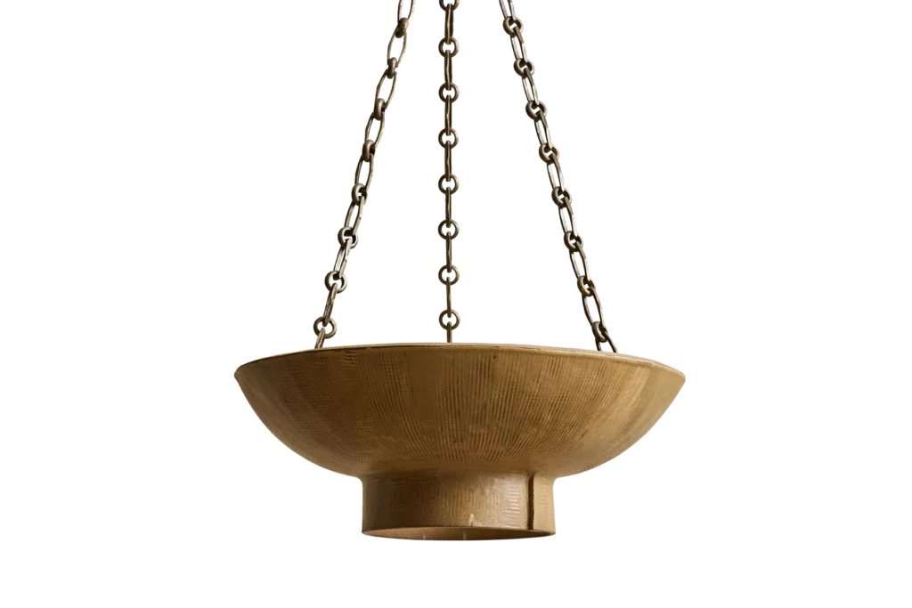 ByLindsey ShookA beautiful partnership was recently forged between two iconic creatives—Nickey Kehoe and Dumais Made. Out of this new collaboration arose a collection of lighting that we are losing sleep over because it’s so good! One of our favorite pieces is the Cuvette Pendant, that features a hand-built stoneware dish pendant featuring a linear texture hand applied by Dumais using an antique wooden spaghetti rolling.