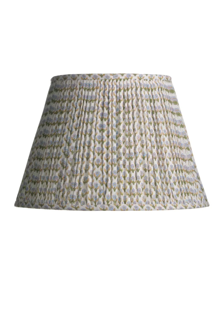 ByLindsey ShookAvailable in 7 sizes, from 6″ to 20″, the Gathered Aditi Floral lampshade by Cuvée features a hand-blocked linen shade painted by artisans.