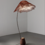 Influenced by high-desert design, Carpenters Workshop Gallery has assembled a curation of items that align with the arid climate including the Ishigaki Floor Lamp #26 Sunset Coral by Aki+Arnaud Cooren that is made of an astonishing mix of linen, silver, copper, carbon, resin, steel and bamboo.