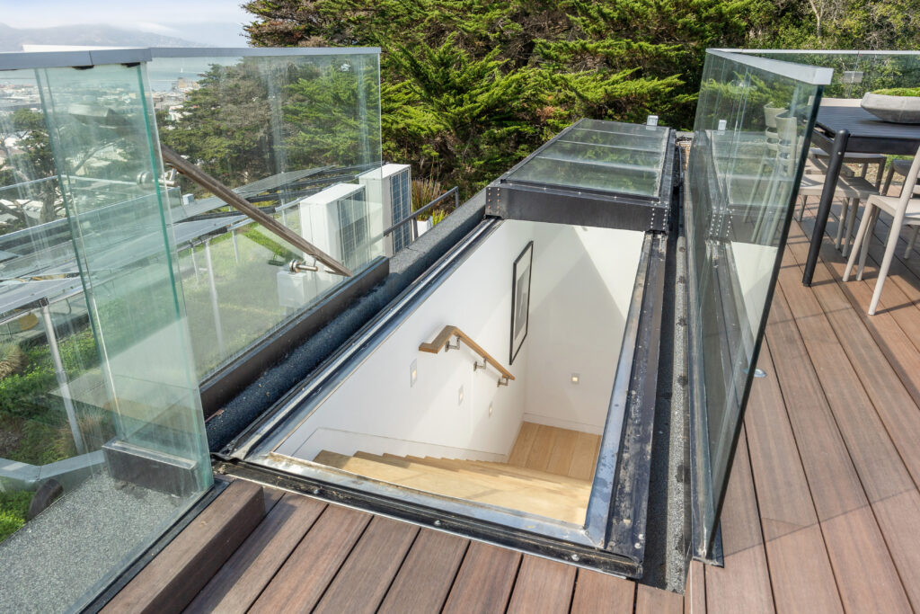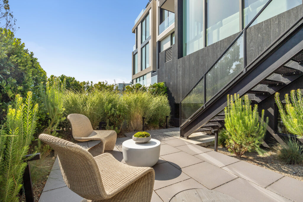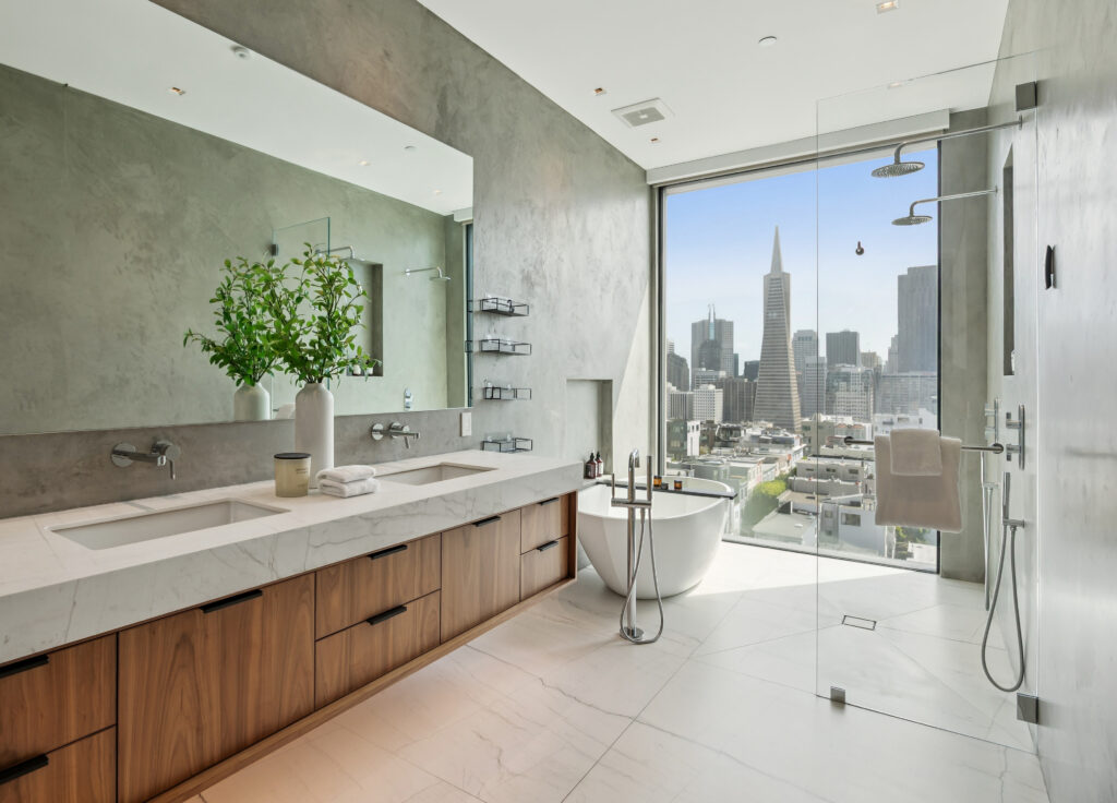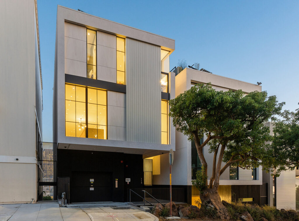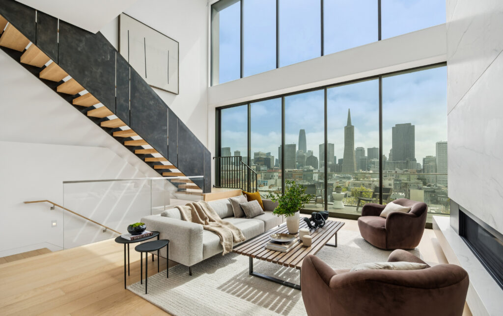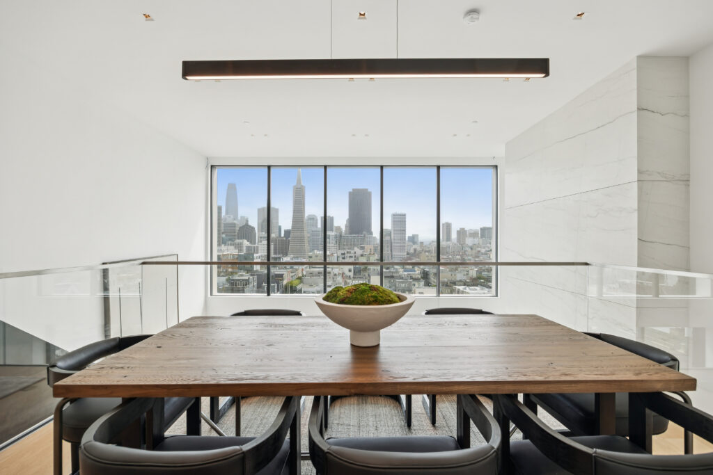 Butler prized interior volumes that were elegantly proportioned and visually uncluttered, values that remain embedded in his firm’s design DNA. What he created here at 115 Telegraph Hill Boulevard is an extraordinary LEED certified, 3-bed, 3-bath, 2-half bath detached condominium, part of a trio of unique homes in the same Modernist idiom.