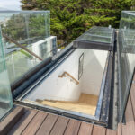 On the lower level, an equally spacious volume for a multipurpose entertaining/meeting space and the third bedroom, with a garden below.