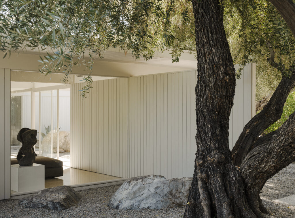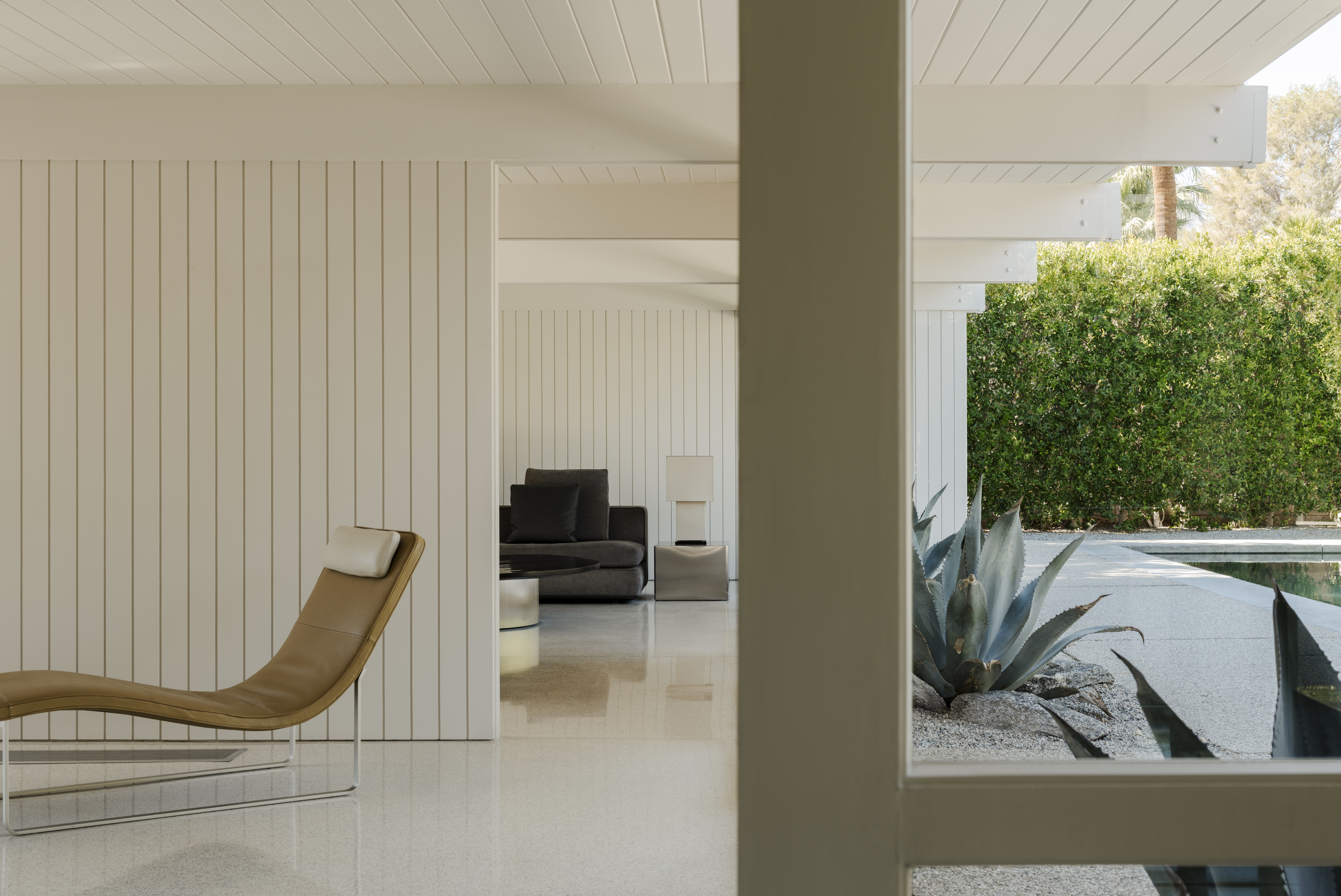 In 2007, master perfumer Daniel Patrick Giles—the home’s current steward—collaborated with Wexler himself, the architect Lance O’Donnell and interior designer Darren Brown, to comprehensively reinvent the house while retaining its signature Post + Beam elements. They added new terrazzo floors, automated systems, baths and a new kitchen. The result is a transformative minimalist dwelling, set in an exquisite desert landscape.