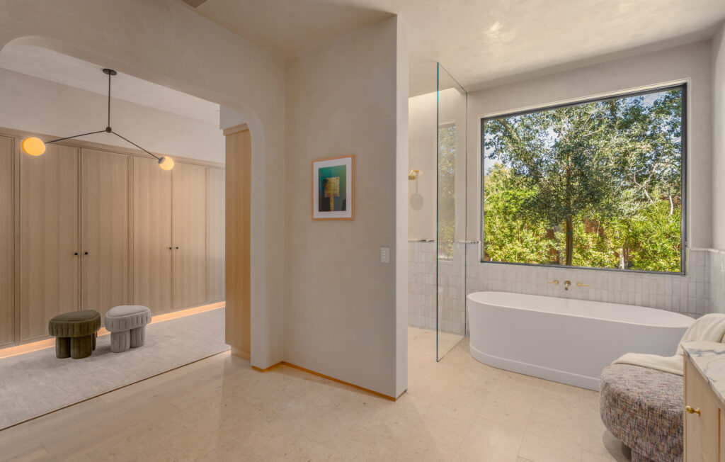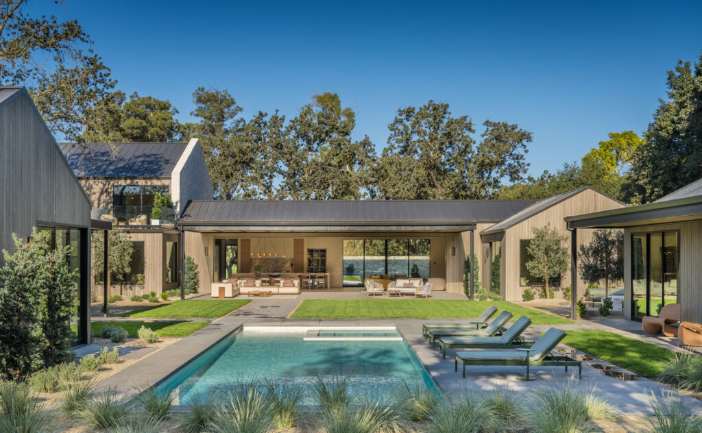 Taking the concept of a chic Modern Farmhouse one step further, Villa Verde is an exceptional new offering on Sonoma’s Eastside. The work of Ridge Design + Build—a firm with deep roots in Wine Country and a reputation for impeccable quality—designed this private gated compound, clad in spruce and stone under a standing seam roof that offers a luxurious retreat minutes away from everything Sonoma and the surrounding area has to give. It’s also one of the first properties to offer a comprehensive program of lime wash paint finishes from Douglas Friedman X Color Atelier‘s collection.