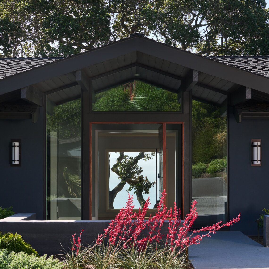 Architect Scott Landry of Studio 101 Designs transforms a hillside home into a Hawaiian-inspired modern escape In the front hallway, a Marvin Ultimate Awning window frames the landscaping outside, forming a direct connection between the interior and exterior. Photos by 22 Waves/Yoni Goldberg. Perched gracefully…