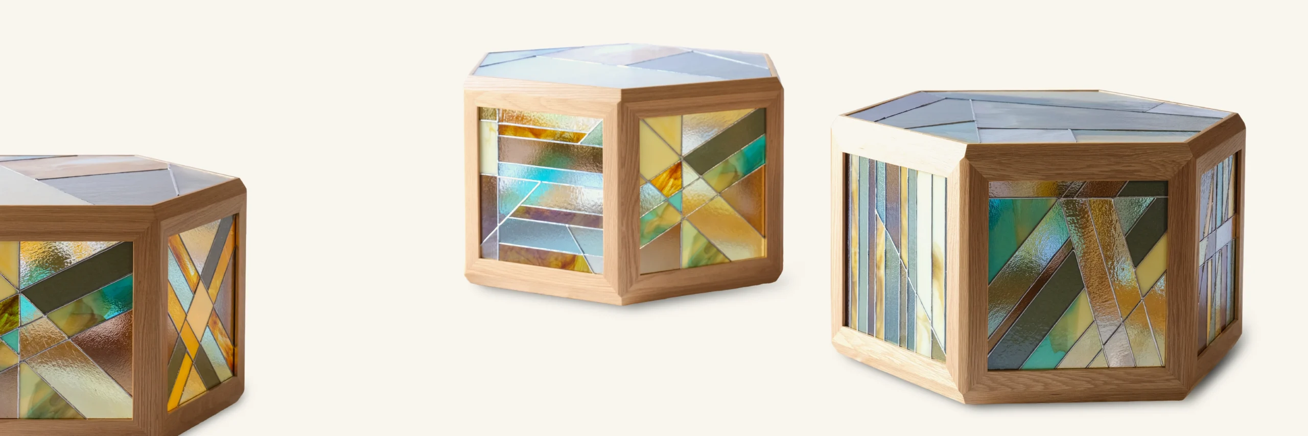 Mark Goudy presents works of ceramic art from his Origami, Shell, and Waveform series made in slipcast paper-thin translucent porcelain, often colored with delicate soluble metal watercolors. Goudy says of his work, “I make vessels which are containers for light and atmosphere.” The starting point for Goudy is a focus on minimalist archetypal forms that reflect the geometries of nature. For the selected work on view, Goudy designed a series of balancing forms that are inspired by Japanese paper folding. When set on a flat surface these forms rock back and forth, naturally settling into their inherent balance point.