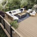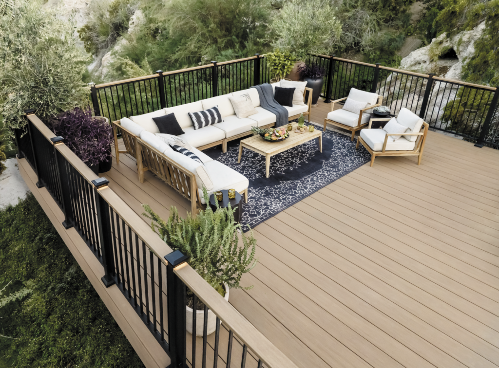 Protection for your home starts with decking. We are beyond impressed with TIMBERTECH’s Advanced PVC Decking—shown in Weathered Teak from their Vintage collection—which is ignition resistant and WUI compliant and boasts a Class A Flame Spread Rating, meaning is burns at a much slower rate and is less likely to contribute to aggressive flame spread. We have seen videos demonstrating the slow burn rate compared to their competitors and were astonished!