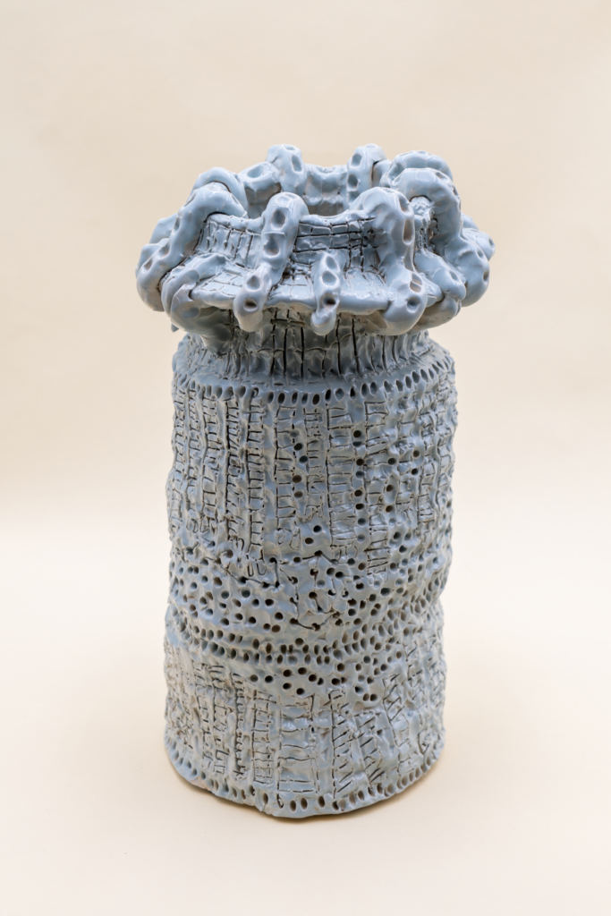 Inspired by the mystery that surrounds the unknown, science fiction and artists including Peter Max and Michelangelo, each vessel is handcrafted and full of life. “The work of Rik van Iersel also left a lasting impression on me when I saw it in person; the depth, emotion and craftsmanship in his pieces sparked new ideas and expanded the way I think about my own creations,” Caldwell says. What makes the emerging artist’s work so unique is his process, which is void of technicality. “I connect with the clay through my hands,” he proclaims. “Instead of using the usual sculpting tools, I press and shape it with my fingers, letting the material respond naturally to my touch. This tactile approach gives my pieces a sense of individuality and organic life that’s hard to achieve any other way.”